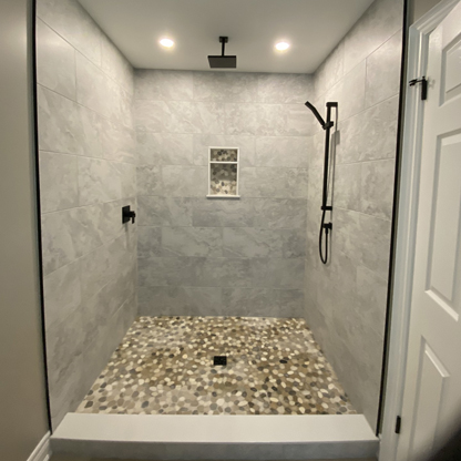 Shower/Tub: installation of floor and or wall tile. Choice of shelving niche size